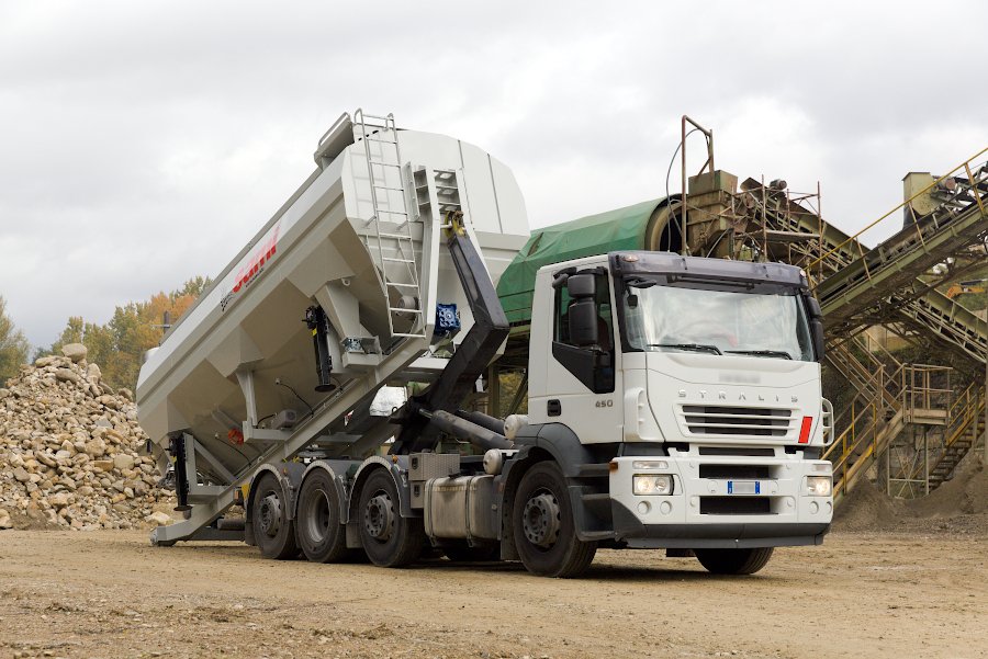 El silo autocargable EUROSILO S se diferencia de las versiones EUROSILO y EUROSILO C por su estructura especial en forma de cuna, que permite la carga, descarga y transporte mediante un camión portador con gancho hidráulico Ampliroll (brazo de elevación).